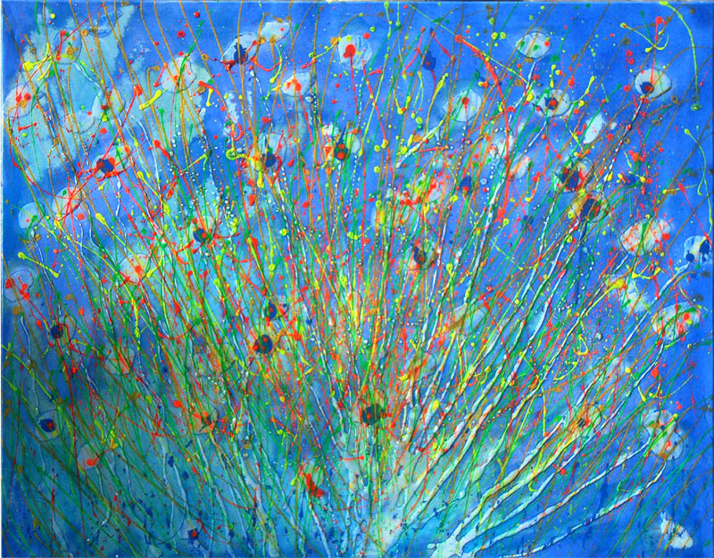 "Flores Azules". Oleo-resina / lienzo. 92 x 73 cm