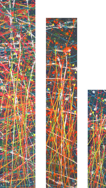 "Happy Lights". Acrylic / canvas. 9" x 47.5" ; 8" x 44" ; 5" x 26"