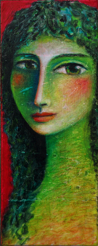 "Long Neck Poetess" . Oil / canvas. 20 cm x 50 cm