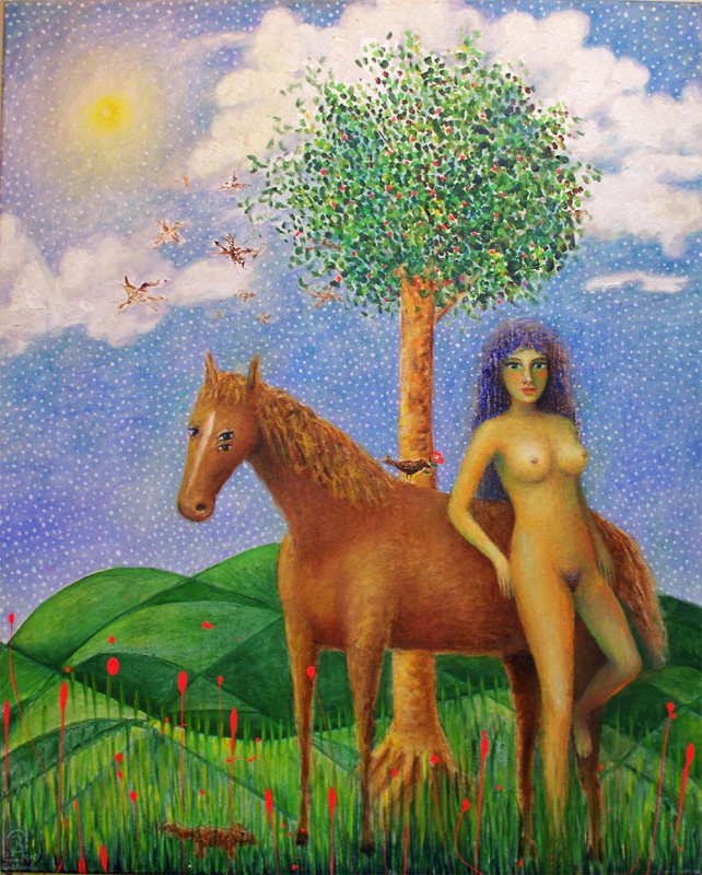 "Rocinante en el Paraíso (Rocinante in Paradise)". Oleo / lienzo. 60 x 76 cm.