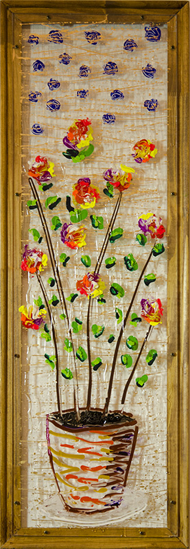 "Transparency 2" by Rafael Gallardo. Acrylic, gold leaf & resin on Plexiglas. 13" x 38"