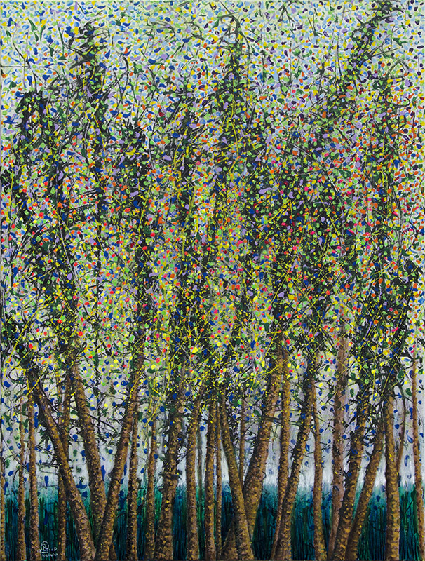 "Tree Jamboree" by Rafael Gallardo. Acrylic & oil / canvas. 30" x 40"
