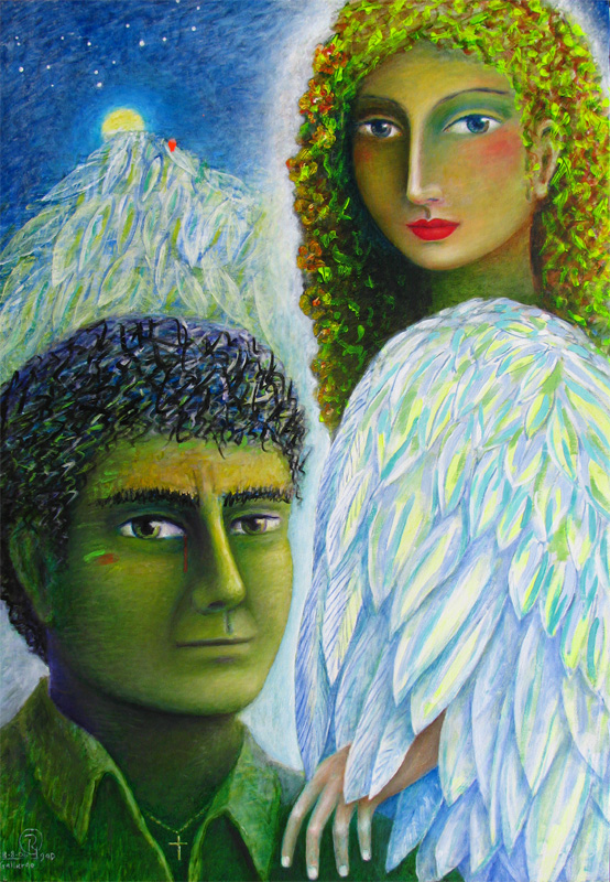 "Self portrait with My Angel". Oil/canvas. 38" x 57.5" (97 x 146 cm.)