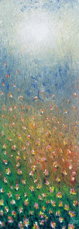 "Spring Again" . Acrylic/ canvas. 18" x 50"
