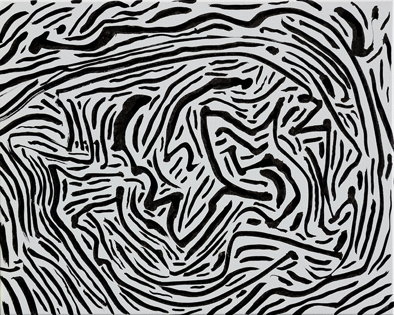 Gallardo. Sumi ink / canvas coated with resin. 24" x 16"